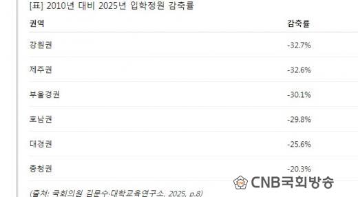 ±¹È¸ ±³À°À§¿øÈ¸ ¼Ò¼Ó ´õºÒ¾î¹ÎÁÖ´ç **±è¹®¼ö ÀÇ¿ø(Àü³² ¼øÃµ°©)**ÀÇ ÀÇ·Ú·Î ´ëÇб³À°¿¬±¸¼Ò°¡ ÀÛ¼ºÇÑ ±¹Á¤°¨»ç Á¤Ã¥º¸°í¼ ¡¸ÇзÉÀα¸ °¨¼Ò¿¡ µû¸¥ Á¤¿ø »ó»ý ¹× ÀçÁ¤ Áö¿ø ¹æÇ⡹(Ã¥ÀÓ¿¬±¸¿ø: ÀÓÀºÈñ ¿¬±¸¿ø)¿¡ µû¸£¸é, 2010³â ÀÌÈÄ 2025³â±îÁö Àü±¹ ´ëÇÐ ÀÔÇÐÁ¤¿øÀº 12¸¸2õ ¸í(-21.4%) °¨¼ÒÇß´Ù.