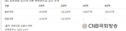 ´ëÇб³À°¿¬±¸¼Ò´Â 2045³â°æ ÇкΠÀÔÇÐÁ¤¿øÀÌ 50% °¨¼ÒÇÒ °æ¿ì, »ç¸³´ëÇÐ µî·Ï±Ý ¼öÀÔÀÌ 1³âÂ÷¿¡ 1Á¶ 5õ¾ï ¿ø, 4³âÂ÷¿¡´Â 3Á¶ 8õ¾ï ¿ø °¨¼ÒÇÒ °ÍÀ¸·Î ³»´ÙºÃ´Ù.