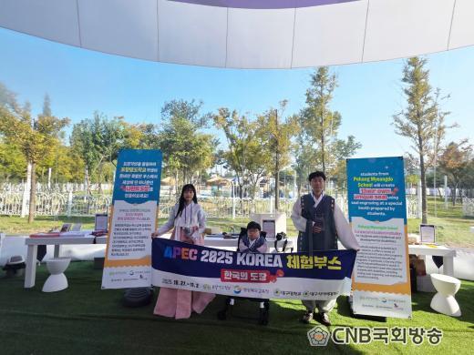 Æ÷Ç×¸íµµÇб³ Çлý 1¸í°ú ±³»ç 2¸íÀ¸·Î ±¸¼ºµÈ üÇè¿î¿µÆÀÀº APEC 2025 KOREA Á¤»óȸ´ã Âü¼®ÀÚµéÀ» ´ë»óÀ¸·Î ¡®Çѱ¹ÀÇ µµÀ塯À̶ó´Â ºÎ½º¸¦ ¿î¿µÇϸç, Âü¼®ÀÚÀÇ À̸§À» Çѱ۷ΠµµÀå¿¡ °¢ÀÎÇÏ¿© ÁõÁ¤ÇÑ´Ù.