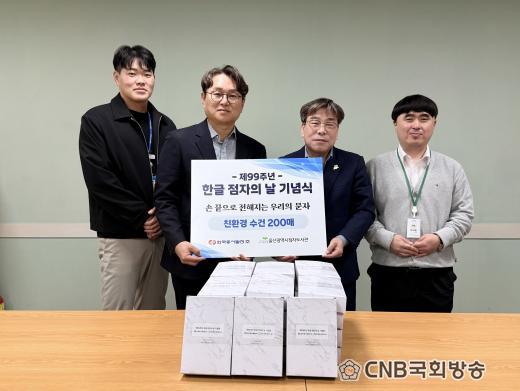 Çѱ¹µ¿¼¹ßÀü(»çÀå ±Ç¸íÈ£)´Â 3ÀÏ(¿ù) ¿ï»ê±¤¿ª½Ã Á¡ÀÚµµ¼°ü(°üÀå À̸¸ÁÖ)¿¡¼ 11¿ù 4ÀÏ¡®Á¦99ÁÖ³â ÇÑ±Û Á¡ÀÚÀÇ ³¯¡¯À» ±â³äÇÏ¿© Âü¼®ÀÚ ±â³äǰÀ¸·Î ÆóÇÃ¶ó½ºÆ½À» Ȱ¿ëÇÑ Ä£È¯°æ ¼ö°Ç 200¸Å¸¦ ÈÄ¿øÇß´Ù.