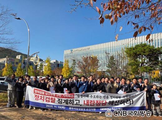 ´õ¹ÎÁÖÀü±¹Çõ½ÅȸÀÇ »óÀÓ´ëÇ¥´Â ±âÀÚȸ°ß¿¡¼ ¡°´ëÀ嵿 »ç°ÇÀÇ º»ÁúÀº óÀ½ºÎÅÍ ¸íÈ®ÇÏ´Ù. Á¤Ä¡°ËÂû°ú ±¹¹ÎÀÇÈûÀÌ ÇѸöÀÌ µÅ ¡®ÀÌÀç¸í Á×À̱⡯¸¦ À§ÇØ ¹úÀÎ Á¤Ä¡Àû °øÀÛ¡±À̶ó°í ÁÖÀåÇß´Ù. ÀÌ¾î ¡°ÃÖ±Ù °ËÂû ³»ºÎ Ç׸íÀº ´Ü¼ø ºÒ¸¸ÀÌ ¾Æ´Ï¶ó, Á¶ÀÛ ¼ö»ç¸¦ ÀºÆóÇÏ°í ¼ö»çÆÀ Ã¥ÀÓÀ» ¼û±â·Á´Â ¡®Á¦2ÀÇ Á¶ÀÛ¡¯ÀÌÀÚ ¸í¹éÇÑ Á¤Ä¡Àû Ç×¸í¡±À̶ó°í °Á¶Çß´Ù.