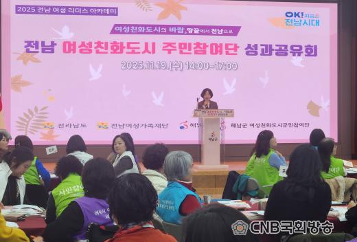 Àü¶ó³²µµ´Â 2025³â Àü³²¿©¼ºÄ£Èµµ½Ã ÁÖ¹ÎÂü¿©´Ü ¼º°ú°øÀ¯È¸¸¦ Áö³ 19ÀÏ ÇØ³²¹®È¿¹¼úȸ°ü¿¡¼ °³ÃÖ, 9°³ ¿©¼ºÄ£Èµµ½Ã ½Ã±º¹Î ÁÖ¹ÎÂü¿©´Ü°ú ¡®¸ðµÎ°¡ ÆòµîÇÏ°í ¾ÈÀüÇÑ, »ì±â ÁÁÀº Àü³²¡¯ ¸¸µé±â ¹æ¾ÈÀ» ³íÀÇÇß´Ù.