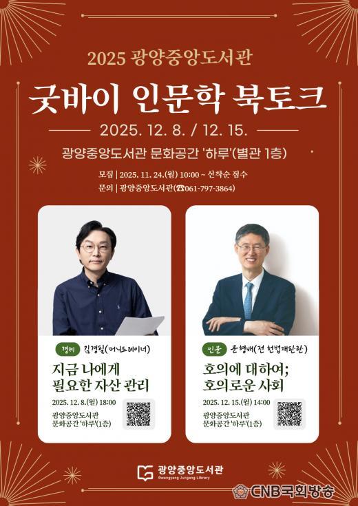 | ±¤¾çÁß¾Óµµ¼°ü, ¡¸±Â¹ÙÀÌ Àι®ÇÐ ºÏÅäÅ©¡¹ ¿î¿µ - 12¿ù 8ÀÏ ±è°æÇÊ ÀÛ°¡, 12¿ù 15ÀÏ ¹®Çü¹è Àü Çå¹ýÀçÆÇ°ü °æÁ¦¡¤Àι® ºÐ¾ß °¿¬ - CNB ±¹È¸¹æ¼Û ±¤¾çÃëÀ纻ºÎ ÀÌÀ±ÈÞ º»ºÎÀå leeyh1373@hanmail.net |
