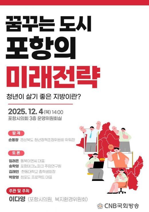 Æ÷Ç×½ÃÀÇȸ º¹Áöȯ°æÀ§¿øÈ¸ ¼Ò¼Ó ÀÌ´Ù¿µ ÀÇ¿øÀº ¿À´Â 12¿ù 4ÀÏ(¸ñ) ¿ÀÈÄ 2½Ã, Æ÷Ç×½ÃÀÇȸ 3Ãþ ¿î¿µÀ§¿øÈ¸½Ç¿¡¼ '²Þ²Ù´Â µµ½Ã Æ÷Ç×ÀÇ ¹Ì·¡Àü·«'À» ÁÖÁ¦·Î Á¤Ã¥ Æ÷·³À» °³ÃÖÇÑ´Ù°í ¹àÇû´Ù.