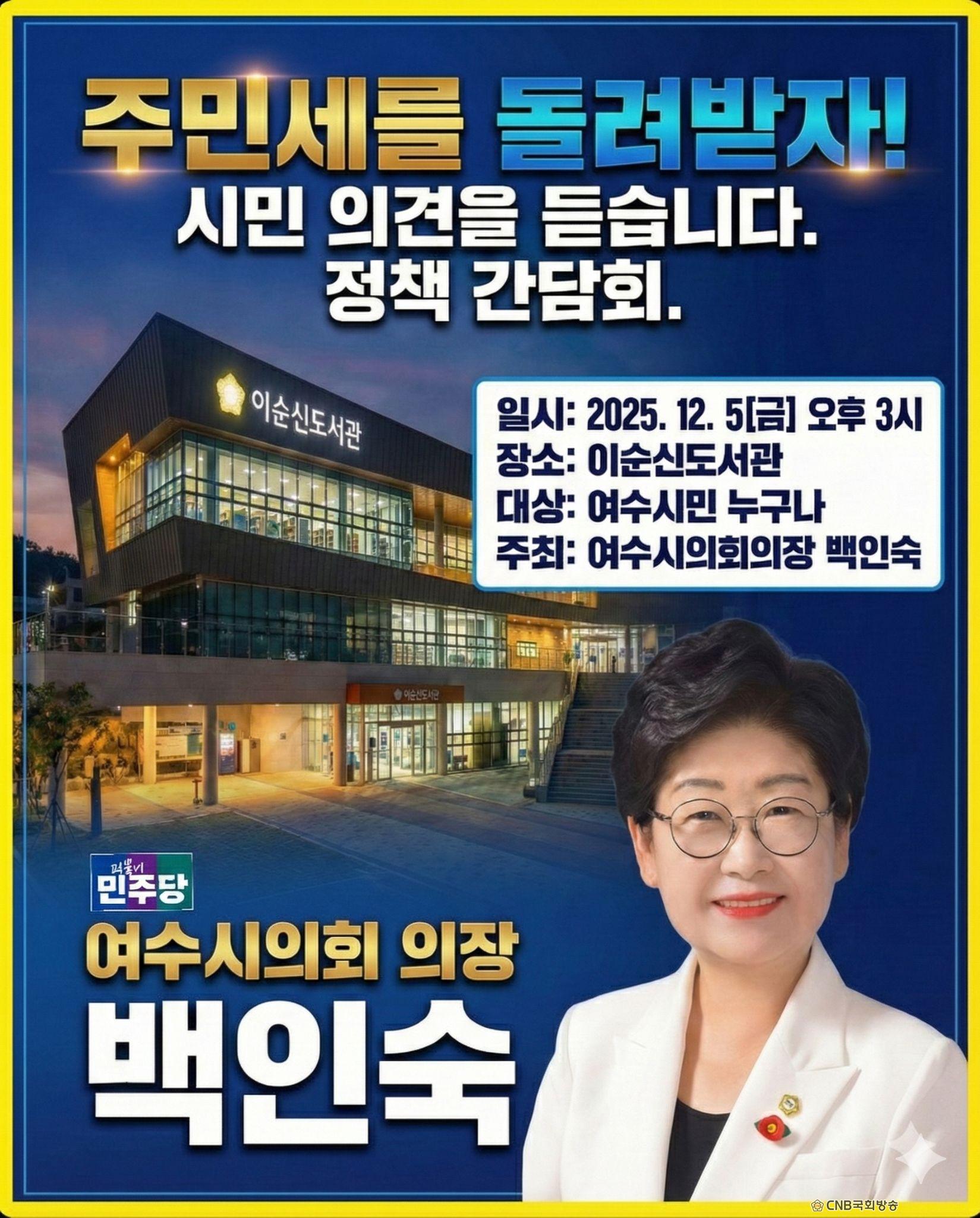 | ¹éÀμ÷ ¿©¼ö½ÃÀÇȸ ÀÇÀå, 12¿ù 5ÀÏ Áֹμ¼ ȯ¿ø¡¤ÁÖ¹ÎÂü¿©¿¹»ê ½ÇÇö °£´ãȸ °³ÃÖ - Áֹμ¼ ȯ¿ø¡¤Âü¿©¿¹»ê °È ³íÀÇ¡¦ ¿©¼öÇü ÁÖ¹ÎÀÚÄ¡ ¸ðµ¨ ù°ÉÀ½ – 5ÀÏ ±Ý¿äÀÏ À̼ø½Åµµ¼°ü¼ ÁֹΡ¤Àü¹®°¡ Âü¿© °ø°³ Á¤Ã¥ °£´ãȸ CNB±¹È¸¹æ¼Û È£³²º»ºÎÀå ¿À°æÅ okt0797@naver.com |