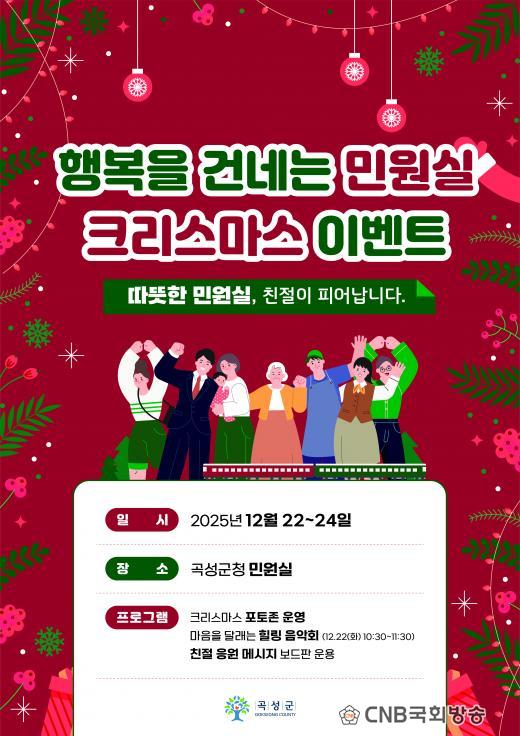 | °î¼º±º, 'ÇູÀ» °Ç³×´Â ¹Î¿ø½Ç Å©¸®½º¸¶½º À̺¥Æ®' °³ÃÖ 2025³â 12¿ù 22ÀϺÎÅÍ 24ÀϱîÁö 3Àϰ£ÀÇ Æ¯º°ÇÑ À̺¥Æ® CNB°î¼º±¸·ÊÃëÀ纻ºÎÀå ±èÈ¿Áß jhjh9158@daum.net |