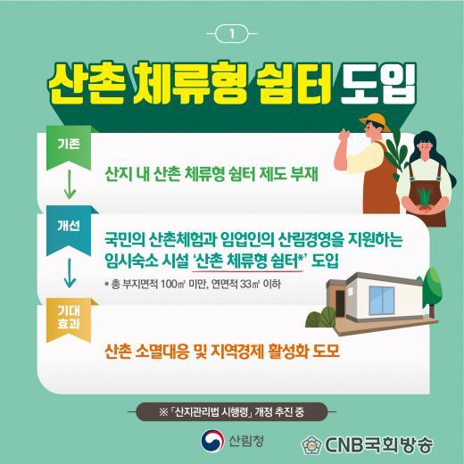 À̹ø ±ÔÁ¦ÇÕ¸®È´Â ±×°£ »êÁö ³» »êÃÌ Ã¼·ùÇü Àӽü÷¼Ò ¼³Ä¡¿¡ ´ëÇÑ ¸íÈ®ÇÑ ±âÁØÀÌ ºÎÁ·Çß´ø Á¡À» °³¼±Çϱâ À§ÇÑ °ÍÀ¸·Î ÃÑ ºÎÁö¸éÀû 100§³ ¹Ì¸¸, ¿¬¸éÀû 33§³ ÀÌÇÏÀÇ ¼Ò±Ô¸ð ½Ã¼³¿¡ ´ëÇØ ¡®»êÃÌ Ã¼·ùÇü ½°ÅÍ¡¯·Î ÀÎÁ¤ÇÏ´Â ¹æÇâÀÌ °ËÅäµÇ°í ÀÖ¾î Áö¿ª »êÃÌ ÇöÀå¿¡¼ÀÇ È°¿ë¼ºÀÌ ³ôÀ» °ÍÀ¸·Î ±â´ëµÈ´Ù.