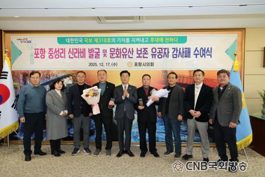 Æ÷Ç×½ÃÀÇȸ(ÀÇÀå ±èÀϸ¸)´Â 17ÀÏ ¿ÀÈÄ ÀÇÀå½Ç¿¡¼ ±¹º¸ ½Â°Ý 10ÁÖ³âÀ» ¸ÂÀº Æ÷Ç× Áß¼º¸® ½Å¶óºñÀÇ ÃÖÃÊ ¹ß°ßÀÚ µî¿¡°Ô °¨»çÆÐ¸¦ Àü´ÞÇß´Ù.