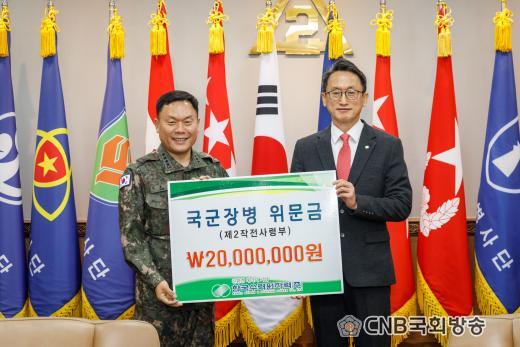 À̳¯ À§¹®´Ü ´ëÇ¥·Î Âü¿©ÇÑ ¼ÕºÀ¼ø ÇѼö¿ø ³ë°æÇù·ÂóÀåÀº ±¹°¡ ¾Èº¸¸¦ À§ÇØ Çå½ÅÇϰí ÀÖ´Â À庴µéÀÇ ³ë°í¿¡ ±íÀº °¨»çÀÇ ¸¶À½À» ÀüÇϸç, ºÎ´ë À庴µéÀÇ »ç±â ÁøÀÛÀ» À§ÇØ À§¹®±Ý 2õ¸¸ ¿øÀ» Àü´ÞÇß´Ù.