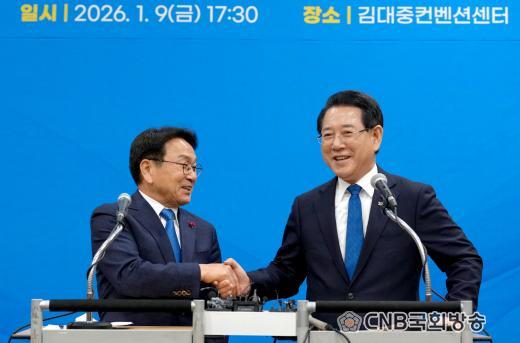 ÀÌÀç¸í ´ëÅë·ÉÀº ¡°½¬¿î ÀÏÀÌ ¾Æ´Ñ ÅëÇÕÀ» ´ë½ÂÀû Â÷¿ø¿¡¼ ÃßÁø ÁßÀÎ µÎ ´ÜüÀåÀÇ °á´Ü¿¡ °¨»çµå¸°´Ù¡±¸ç ¡°´ëÇѹα¹ ¹ÎÁÖÁÖÀÇ ¹ßÀü¿¡ ±â¿©Çؿ ±¤ÁÖ¡¤Àü³²ÀÌ »õ·Î¿î Àü±â¸¦ ¸ÂÀÌÇÒ ¼ö ÀÖµµ·Ï ÀçÁ¤¡¤»ê¾÷¡¤ÇàÁ¤ Àü¹Ý¿¡ °ÉÄ£ ´ëÆøÀûÀÎ Áö¿øÀ» Çϰڴ١±°í ¾à¼ÓÇß´Ù.