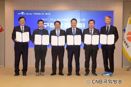 ±¤ÁÖ½Ã¿Í 5°³ ÀÚÄ¡±¸´Â ÇàÁ¤ÅëÇÕÀÇ ¼º°øÀ» À§Çؼ´Â ¹«¾ùº¸´Ù ½Ã¹ÎµéÀÇ µ¿ÀÇ¿Í °ø°¨ÀÌ ÇʼöÀûÀ̶ó´Â µ¥ ¶æÀ» °°ÀÌÇϰí, À̸¦ ¹ÙÅÁÀ¸·Î °øµ¿¼±¾ð¹®À» ¹ßÇ¥Çß´Ù.