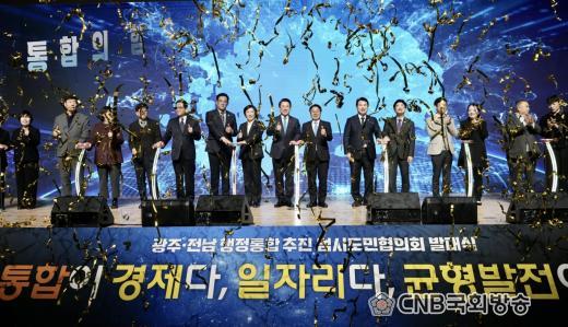 ±¤ÁÖ±¤¿ª½Ã(½ÃÀå °±âÁ¤)¿Í Àü¶ó³²µµ(Áö»ç ±è¿µ·Ï)´Â 16ÀÏ ¿ÀÈÄ 3½Ã ±è´ëÁßÄÁº¥¼Ç¼¾ÅÍ¿¡¼ ¡®±¤ÁÖ‧Àü³² ÇàÁ¤ÅëÇÕ ÃßÁø ¹ü½Ãµµ¹Î ÇùÀÇȸ¡¯ ¹ß´ë½ÄÀ» ¿°í, ´ëÇѹα¹ ÃÖÃÊÀÇ ÅëÇÕ ±¤¿ªÁö¹æÁ¤ºÎ ź»ýÀ» À§ÇÑ ½Ãµµ¹Î ¿ª·® °áÁý¿¡ ³ª¼¹´Ù.
