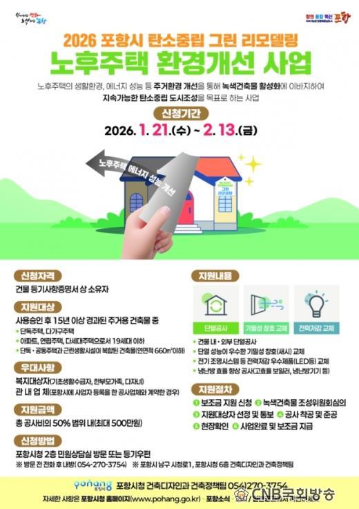 | Æ÷Ç×½Ã, 2026³â ³ëÈÄÁÖÅà ±×¸°¸®¸ðµ¨¸µ Áö¿ø ¡¦ ¿¡³ÊÁö ºñ¿ë Àý°¨ - »ç¿ë½ÂÀÎ ÈÄ 15³â ÀÌ»ó °æ°ú ÁÖ°Å¿ë °ÇÃ๰ ´ë»ó, ÃÖ´ë 500¸¸ ¿ø Áö¿ø - 1¿ù 21ÀϺÎÅÍ 2¿ù 13ÀϱîÁö Á¢¼ö¡¦´Ü¿¡¤Ã¢È£¡¤³Ã³¹æ¡¤½ÅÀç»ý¿¡³ÊÁö Áö¿ø CNB±¹È¸¹æ¼Û Àü±¹ÃѰýº»ºÎÀå ±è°Ç¿ì oprus21@naver.com |