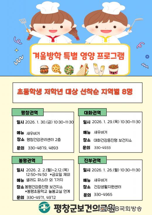 Æòⱺº¸°ÇÀÇ·á¿øÀº 1¿ù 26ÀϺÎÅÍ 2¿ù 12ÀϱîÁö 4°³ Áö¿ª(ÆòâÀ¾, ´ëȸé, ºÀÆò¸é, ÁøºÎ¸é)¿¡¼ ÃʵîÇлý ´ë»óÀ¸·Î ¡¸°Ü¿ï¹æÇРƯº° ¿µ¾ç ÇÁ·Î±×·¥¡¹À» ¿î¿µÇÑ´Ù°í ¹àÇû´Ù.