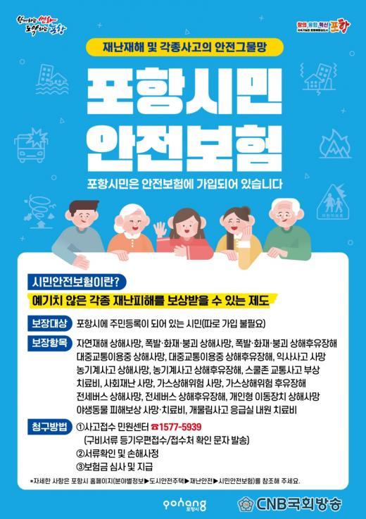 ½Ã¹Î¾ÈÀüº¸ÇèÀº Æ÷Ç׽ÿ¡ Áֹεî·ÏÀÌ µÇ¾î ÀÖ´Â ¸ðµç ½Ã¹Î(µî·Ï ¿Ü±¹ÀÎ Æ÷ÇÔ)À» ´ë»óÀ¸·Î ÀÏ»ó»ýȰ Áß ¿¹±âÄ¡ ¸øÇÑ »ç°í³ª Àç³ ¹ß»ý ½Ã º¸Çè±ÝÀ» Áö±ÞÇÏ´Â Á¦µµ·Î, º°µµÀÇ °¡ÀÔ ÀýÂ÷ ¾øÀÌ ÀÚµ¿À¸·Î °¡ÀԵȴÙ. °³ÀÎÀÌ °¡ÀÔÇÑ º¸ÇèÀ̳ª Àç³Áö¿ø±Ý°ú Áߺ¹ º¸Àåµµ °¡´ÉÇÏ´Ù.