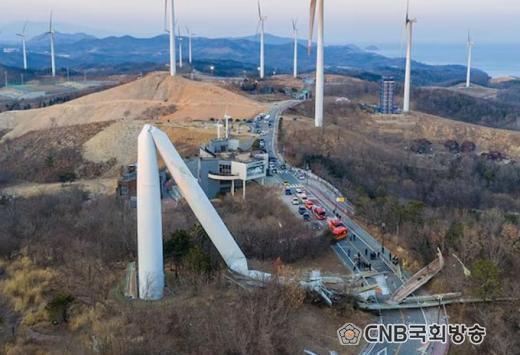 2ÀÏ ¿µ´ö±º âÆ÷¸® º°ÆÄ¶û°ø¿ø ³» dz·Â¹ßÀü´ÜÁö¿¡¼ ³ôÀÌ ¾à 80m¿¡ ´ÞÇϴ dz·Â¹ßÀü±â ±âµÕÀÌ Áß°£ ºÎÀ§¿¡¼ ÆÄ¼ÕµÇ¸ç ³Ñ¾îÁ³´Ù. »ç°í ´ç½Ã dz¼ÓÀº ÃÊ¼Ó 5~7m ¼öÁØÀ¸·Î, Åë»óÀûÀΠdz·Â¹ßÀü±â °¡µ¿ ¹üÀ§¿¡ ÇØ´çÇÏ´Â Á¶°ÇÀ̾ú´Ù. ´ÙÇàÈ÷ Àθí ÇÇÇØ´Â ¾ø¾úÁö¸¸, ÀÜÇØ°¡ µµ·Î¸¦ µ¤Ä¡¸ç ºÒ°ú ¸î ÃÊ Â÷ÀÌ·Î ´ëÇü Âü»ç¸¦ ÇÇÇß´Ù´Â Á¡¿¡¼ ½Ã¹Î ¾ÈÀüÀ» À§ÇùÇÑ Áß´ë »ç°í·Î ¹Þ¾Æµé¿©Áö°í ÀÖ´Ù.