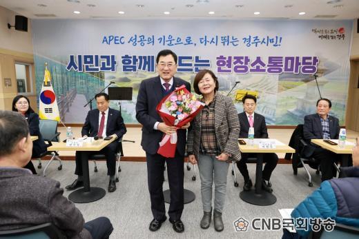 ÁÖ³«¿µ °æÁÖ½ÃÀåÀº Àλ縻À» ÅëÇØ ¡°ÇöÀå¼ÒÅ븶´çÀº ÁֹΠ¿©·¯ºÐÀÇ »î°ú °¡Àå °¡±î¿î ¹®Á¦¸¦ Á÷Á¢ µè°í ÇØ¹ýÀ» ã´Â ÀÚ¸®¡±¶ó¸ç ¡°¿À´Ã °ÇõÀ¾°ú ¼¸é¿¡¼ ³ª¿Â °ÇÀÇ»çÇ× ÇϳªÇϳª¸¦ ¸é¹ÐÈ÷ °ËÅäÇØ, ½ÇÇö °¡´ÉÇÑ »ç¾ÈºÎÅÍ Â÷±ÙÂ÷±Ù ½ÃÁ¤¿¡ ¹Ý¿µÇØ ³ª°¡°Ú´Ù¡±°í ¹àÇû´Ù.