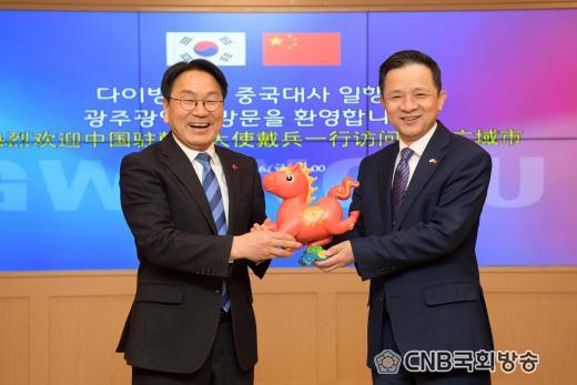 ° ½ÃÀåÀº ¸ÕÀú ¡°¿ÃÇØ´Â ±¤ÁÖ¿Í Áß±¹ ±¤Àú¿ìÀÇ ÀڸŰῬ 30ÁÖ³âÀÌ µÇ´Â ¶æ±íÀº ÇØÀε¥ ±¹¸³5¡¤18¹ÎÁÖ¹¦Áö¸¦ ã¾ÆÁּż °¨»çÇÏ´Ù¡±¸ç ¡°ÀÌÀç¸í ´ëÅë·É°ú ½ÃÁøÇÎ ÁÖ¼®ÀÌ ÇÑÁßÀÇ µ·µ¶ÇÔÀ» º¸¿©ÁØ ¸¸Å À̹ø ¸¸³²ÀÌ ¿ìÈ£±³·ù Çù·ÂÀÇ ÁÁÀº ±âȸ·Î ¹ßÀüÇϱ⸦ Èñ¸ÁÇÑ´Ù¡±°í ¸»Çß´Ù.