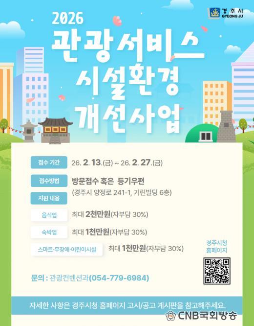 | °æÁÖ½Ã, °ü±¤¼ºñ½º ½Ã¼³È¯°æ°³¼±»ç¾÷ Âü¿©¾÷ü ¸ðÁý - À½½Ä‧¼÷¹Ú¾÷¼Ò ´ë»ó ½Ã¼³°³¼± Áö¿ø¡¦½º¸¶Æ®‧¹«Àå¾Ö‧¾î¸°ÀÌ ÆíÀǽü³ È®Ãæ CNB±¹È¸¹æ¼Û Àü±¹ÃѰýº»ºÎÀå ±è°Ç¿ì oprus21@naver.com |
