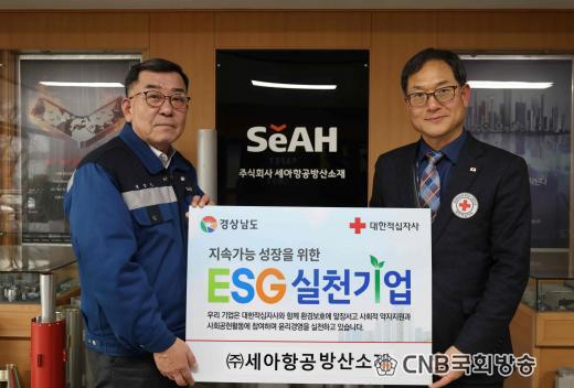 ´ëÇÑÀû½ÊÀÚ»ç °æ³²Áö»ç(ȸÀå ¹ÚÈñ¼ø)´Â 10ÀÏ(È) ¢ß¼¼¾ÆÇ×°ø¹æ»ê¼ÒÀç(´ëÇ¥ÀÌ»ç ¼ºÃ¢¸ð)¿Í ESG½Çõ±â¾÷ 94È£ ¸íÆÐ Àü´Þ½ÄÀ» ÁøÇàÇß´Ù°í ¹àÇû´Ù.