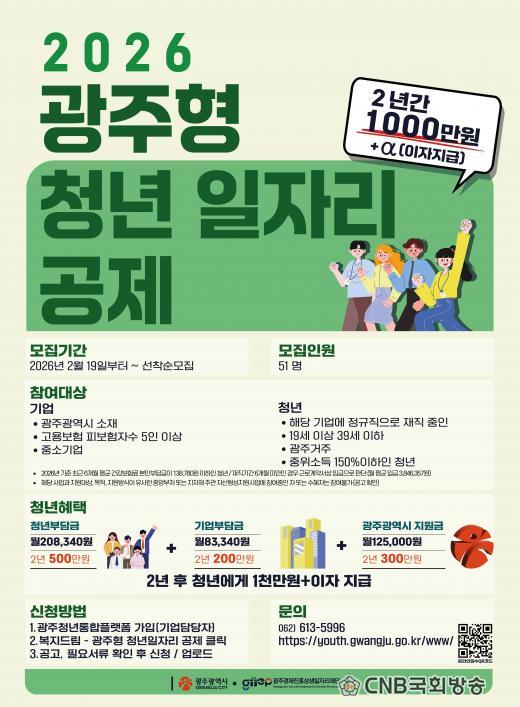 ¡®±¤ÁÖÇü û³âÀÏÀÚ¸® °øÁ¦ »ç¾÷¡¯Àº û³âÀÌ 2³â°£ 500¸¸¿øÀ» Àû¸³ÇÏ¸é ±â¾÷ 200¸¸¿ø, ±¤Áֽð¡ 300¸¸¿øÀ» °¢°¢ Àû¸³ÇØ ¸¸±â°øÁ¦±Ý 1000¸¸¿øÀ» Áö¿øÇÏ´Â Á¦µµ´Ù. û³âÀÇ ¾ÈÁ¤Àû Áö¿ªÁ¤ÂøÀ» µ½´Â µ¿½Ã¿¡, Áö¿ª Áß¼Ò±â¾÷ÀÇ Àη Ȯº¸¿Í Àå±â±Ù¼ÓÀ» À¯µµÇϱâ À§ÇØ Áö³ 2024³â µµÀÔÇß´Ù.