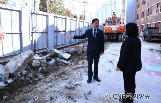 ° ÀÇ¿øÀº ÇöÀç ÃßÁø ÁßÀÎ Á¼ö¿µÃÊ Àα٠Àεµ °³¼³ °ø»ç ÇöÀåÀ» ã¾Æ Çб³ °ü°èÀÚ ¹× ÁֹδëÇ¥¿Í ÇÔ²² ÁøÇà »óȲÀ» Á¡°ËÇß´Ù.
