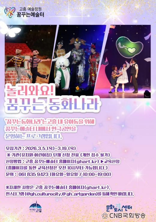 °íÈﱺÀº ¿À´Â 3¿ù 5ÀϺÎÅÍ 19ÀϱîÁö ¾î¸°ÀÌ ¿¬±Ø ¡®³î·¯¿Í¿ä <²Þ²Ù´Â µ¿È³ª¶ó>¡¯ ´Üü °ü¶÷ ½ÅûÀ» ¹Þ´Â´Ù. °ø¿¬Àº °íÈï ²Þ²Ù´Â¿¹¼úÅÍ 2Ãþ ¸öÀÛ¾÷Àå¿¡¼ 4¿ùºÎÅÍ 6¿ù±îÁö ¼¼ Â÷·Ê ÆîÃÄÁø´Ù.
