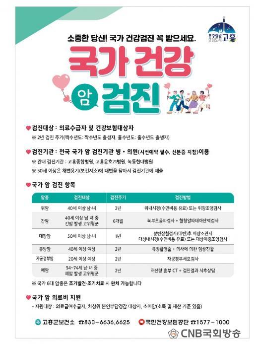 ÇÑÆí ±¹°¡¾Ï°ËÁø°ú ÀÇ·áºñ Áö¿ø»ç¾÷ °ü·Ã ¹®ÀÇ´Â **°íÈﱺ º¸°Ç¼Ò Áö¿ªº¸°ÇÆÀ(061-830-6636)**À¸·Î ÇÏ¸é µÈ´Ù.
