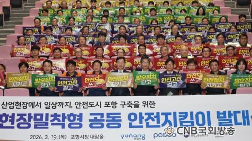 À̹ø ¹ß´ë½Ä¿¡´Â Æ÷Ç׽ø¦ ºñ·ÔÇØ Æ÷½ºÄÚ, °í¿ë³ëµ¿ºÎ Æ÷Ç×Áöû, ¾ÈÀüº¸°Ç°ø´Ü °æºÏµ¿ºÎÁö»ç°¡ Âü¿©ÇØ ¡®°øµ¿ ¾ÈÀüÁöÅ´ÀÌ ÇùÀÇü¡¯¸¦ ±¸¼ºÇßÀ¸¸ç, ¾ÈÀüÁöÅ´ÀÌ¿Í °ü°èÀÚ µî 150¿© ¸íÀÌ Âü¼®Çß´Ù.