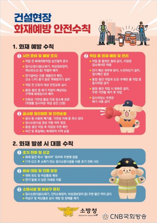 ÀÌ¿¡ ¼Ò¹æ¼´Â ¡ãÀÛ¾÷ Àü ÈÀçÀ§Ç輺 Æò°¡ ¹× ¾ÈÀüÁ¶Ä¡ ÀÌÇà ¡ãÀӽüҹæ½Ã¼³(¼Òȱâ, ºñ»ó°æº¸ÀåÄ¡ µî) ÀûÁ¤ ¹èÄ¡ ¡ãÀü±â¼³ºñ Á¡°Ë ¹× °úºÎÇÏ ¹æÁö ¡ã¿ëÁ¢¡¤¿ë´Ü ÀÛ¾÷ ½Ã ÈÀç°¨½ÃÀÚ ¹èÄ¡ µî »çÀü ¿¹¹æÁ¶Ä¡ÀÇ Ã¶ÀúÇÑ ÀÌÇàÀ» °Á¶Çß´Ù.