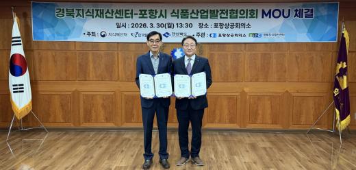 Æ÷Ç×»ó°øÈ¸ÀǼÒ(ȸÀå ³ªÁÖ¿µ)¿¡¼ ¿î¿µÇÏ´Â °æºÏÁö½ÄÀç»ê¼¾ÅÍ¿Í Æ÷Ç׽à ½Äǰ»ê¾÷¹ßÀüÇùÀÇȸ(ȸÀå ¼Õº´¿õ)°¡ Áö¿ª ½Äǰ»ê¾÷ ºÐ¾ß ¼Ò»ó°øÀεéÀÇ Áö½ÄÀç»ê(IP) °æÀï·Â °È¿Í ±Ç¸® º¸È£¸¦ À§ÇØ 3¿ù 30ÀÏ(¿ù) 2Ãþ ȸÀǽǿ¡¼ ¡®¼Ò»ó°øÀÎ ºê·£µå º¸È£ ¹× Áö½ÄÀç»ê âÃâ Áö¿øÀ» À§ÇÑ ¾÷¹«Çù¾à¡¯À» ü°áÇÏ¿´´Ù.