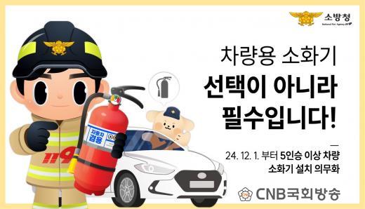 À̹ø È«º¸´Â ¡¸¼Ò¹æ½Ã¼³ ¼³Ä¡ ¹× °ü¸®¿¡ °üÇÑ ¹ý·ü¡¹ °³Á¤¿¡ µû¶ó 2024³â 12¿ù 1ÀϺÎÅÍ Â÷·®¿ë ¼Òȱ⠺ñÄ¡ Àǹ« ´ë»óÀÌ ±âÁ¸ 7Àν À̻󿡼 5Àν ÀÌ»óÀÇ ¸ðµç ½Â¿ëÂ÷·Î È®´ë ½ÃÇàµÊ¿¡ µû¶ó, °ü·Ã ³»¿ëÀ» ½Ã¹Îµé¿¡°Ô ³Î¸® ¾Ë¸®°í ¾ÈÀü ¹®È¸¦ Á¤Âø½Ã۱â À§ÇØ ¸¶·ÃµÆ´Ù.