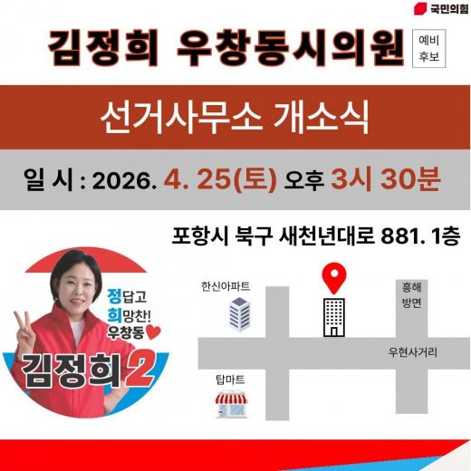 | ±èÁ¤Èñ Æ÷Ç×½ÃÀÇ¿ø ¿¹ºñÈĺ¸, 25ÀÏ ¼±°Å»ç¹«¼Ò °³¼Ò CNB±¹È¸¹æ¼Û Àü±¹ÃѰýº»ºÎÀå ±è°Ç¿ì oprus21@naver.com |