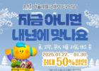 °íÈﱺ(±º¼ö °ø¿µ¹Î)ÀÌ ¿î¿µÇÏ´Â ¿Â¶óÀÎ ¼îÇθô °íÈï¸ôÀº 1¿ù 22ÀϺÎÅÍ 30ÀϱîÁö °Ü¿ï Á¦Ã¶ ³ó¼ö»ê¹°À» ÃÖ´ë 50% ÇÒÀÎÇϴ Ưº° ±âȹÀü ¡®Áö±Ý ¾Æ´Ï¸é ³»³â¿¡ ¸À³ª¿ä¡¯¸¦ °³ÃÖÇÑ´Ù. À̹ø ±âȹÀüÀº °Ü¿ïö¿¡ ¸À°ú ¡¦
