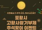 Æ÷Ç׽ô ¿À´Â 24ÀϺÎÅÍ 10¿ù 24ÀϱîÁö ¡®Ãß¼®¸ÂÀÌ °íÇâ»ç¶û±âºÎÁ¦ Ưº° À̺¥Æ®¡¯¸¦ ÁøÇàÇÑ´Ù. À̹ø À̺¥Æ®´Â Æ÷Ç׽ÿ¡ 10¸¸ ¿ø ÀÌ»ó ±âºÎÇÑ Âü¿©ÀÚ¸¦ ´ë»óÀ¸·Î Çϸç, Ãß÷À» ÅëÇØ 50¸íÀ» ¼±Á¤ÇØ Æ÷Ç× ´ëÇ¥ ¼±¹°¡¦